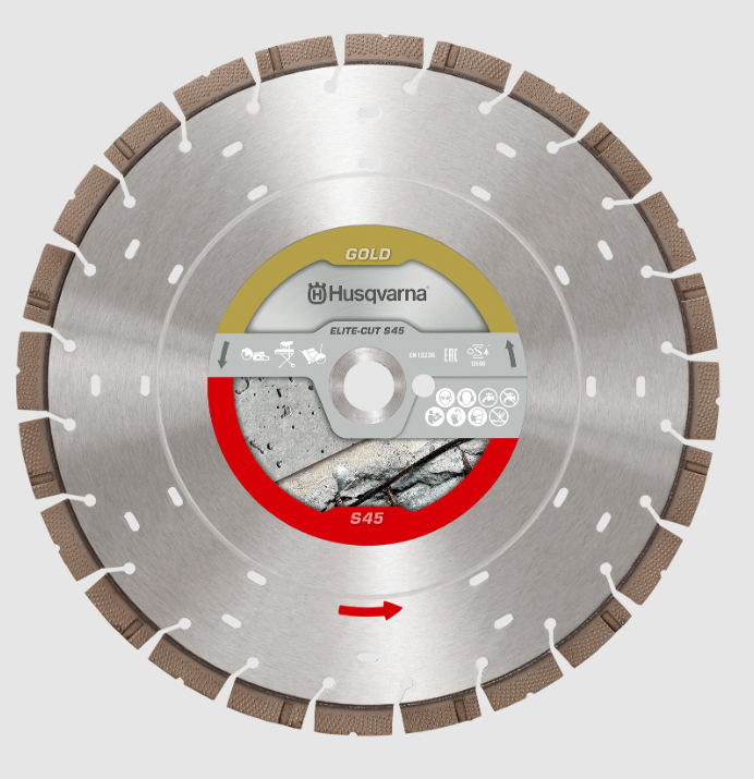 A Gold sorozat részét képező Elite-Cut™ S45 korongot kifejezetten vasbeton vágásához tervezték. Ez a prémium szintű korong két különböző szegmenskialakítást kínál: az új, Z-Edge alakú Exo-Grit, és az új, élgödrökkel ellátott Flat Exo-Grit szegmenst. Ideális választás a kézi vágógépekkel és alacsony teljesítményű aljzatvágókkal való sima és hatékony vágáshoz.